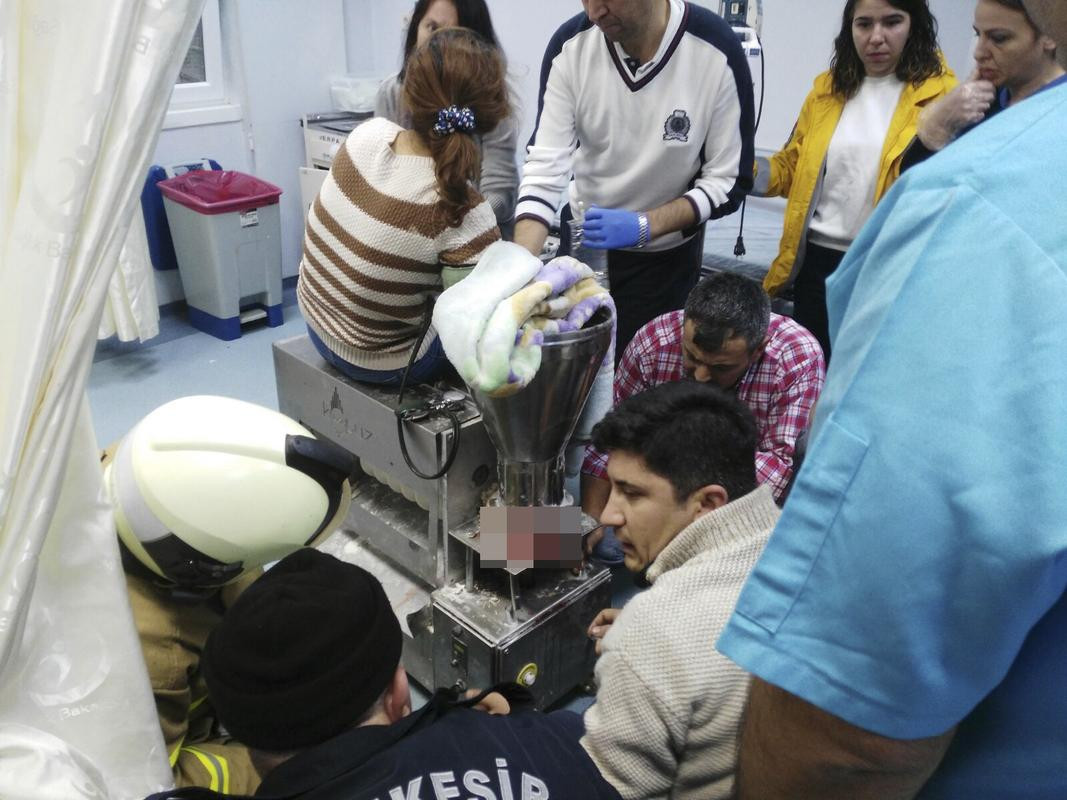 Hastaneye gelen ekipler, taşlama makinesiyle hamur makinesini kesti ve Pehlivan'ın elini kurtardı.
