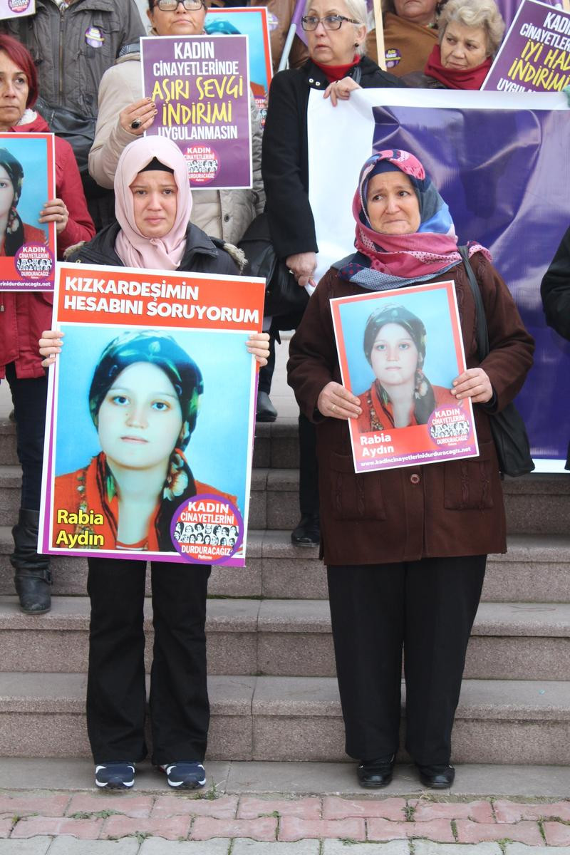 Dava öncesinde Balıkesir Adliyesi önünde Kadın Cinayetlerini Durduracağız Platformu üyeleri ile Rabia Aydın'ın babası Sezai, annesi Sadiye ve kardeşi Fatma Alkan bir araya geldi.