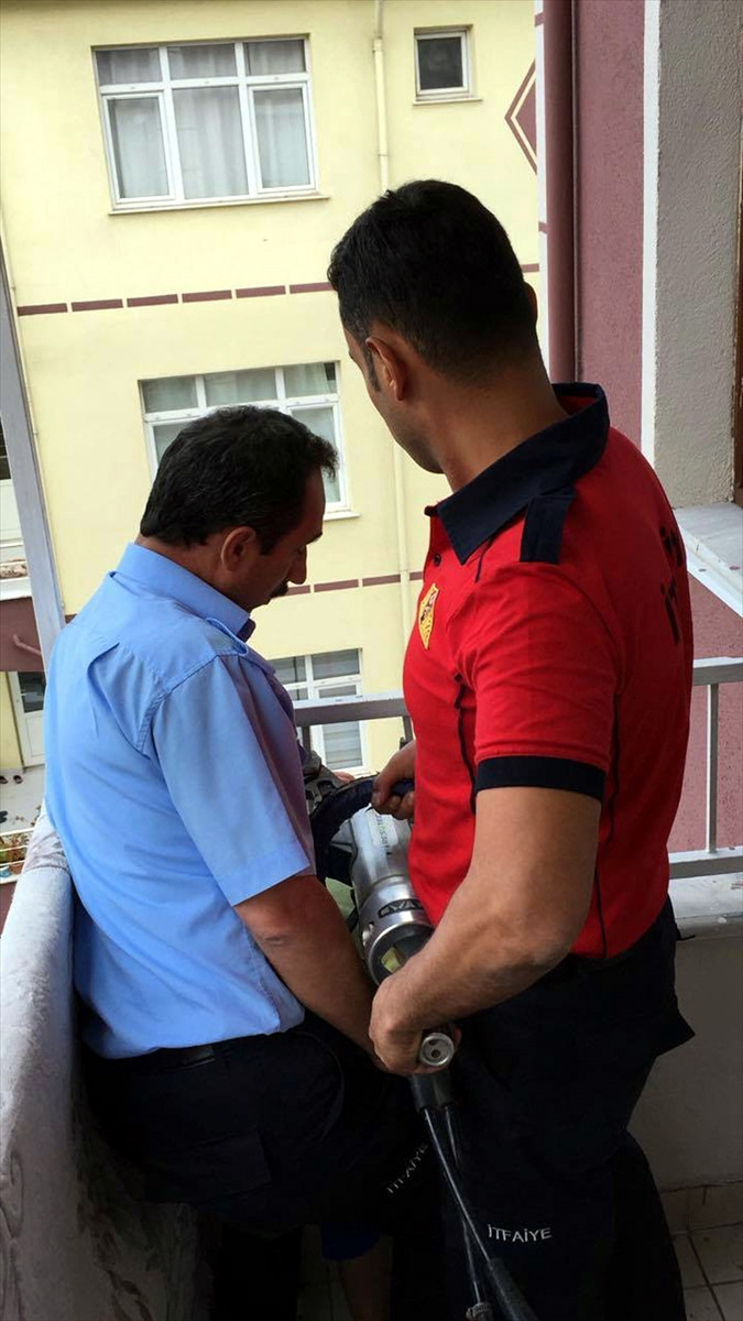 Durumu gören anne Duygu Demirtaş'ın haber verdiği itfaiye ekipleri, 10 dakika süren çalışma sonucunda balkon demirlerini ayırıcı makineyle açarak çocuğu kurtardı.
