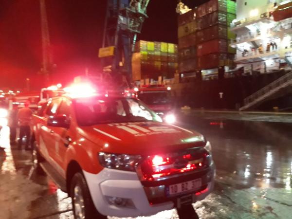 BALIKESİR'in Bandırma ilçesindeki limanda yükleme yapan vinçte çıkan yangın itfaiye ekiplerince bir saatte söndürüldü.