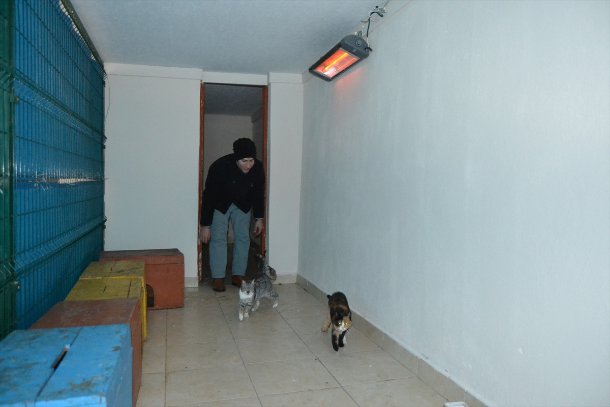 KARABÜK (AA) - Karabük'te, hayvan barınağında yaşayan kedi ve köpekler, dondurucu soğuğun etkisinden elektrikli sobalarla korunuyor.