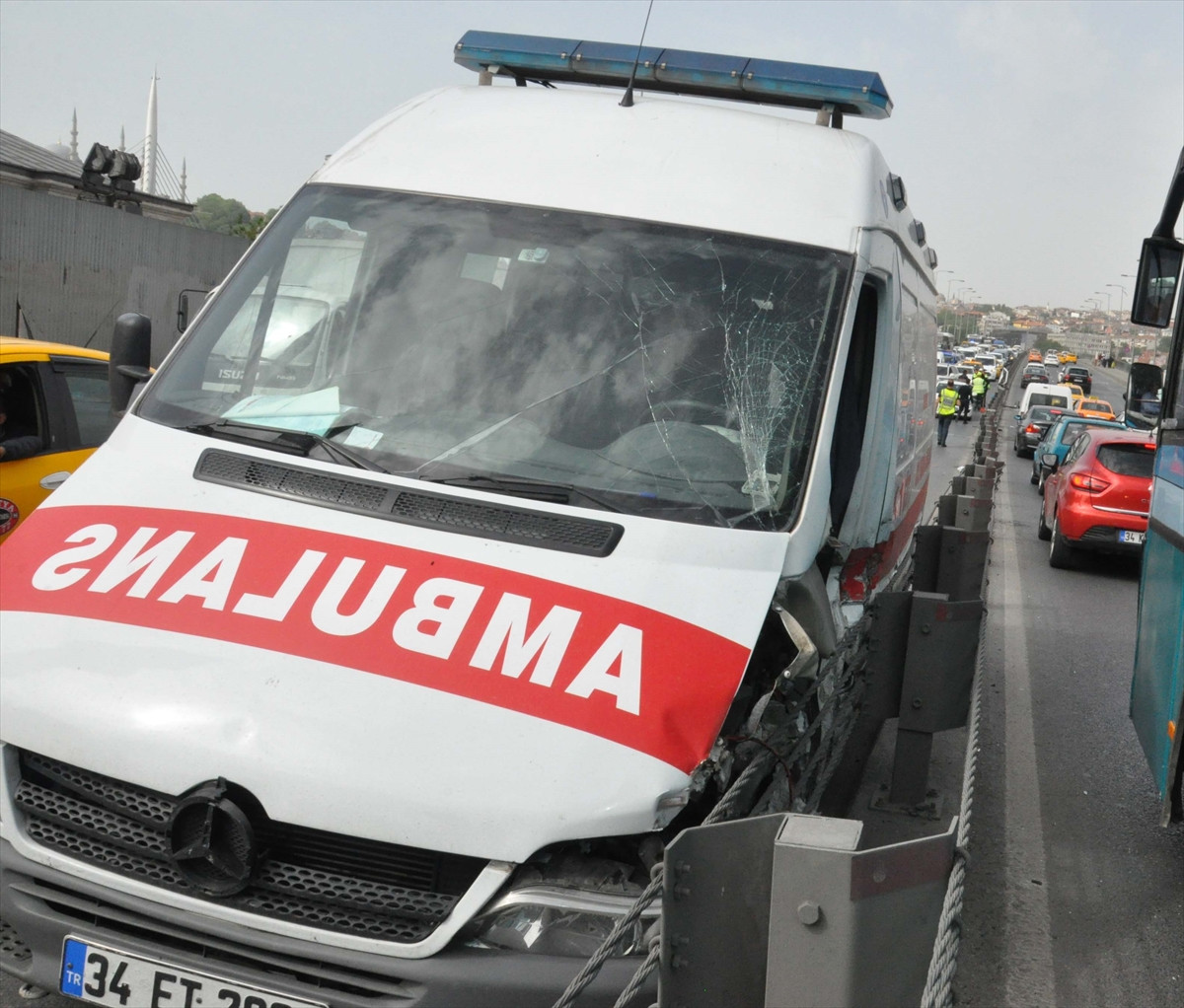 İSTANBUL (AA) - Unkapanı Köprüsü'nde, bariyerlere çarpan ambulansın sürücüsü yaralandı.
