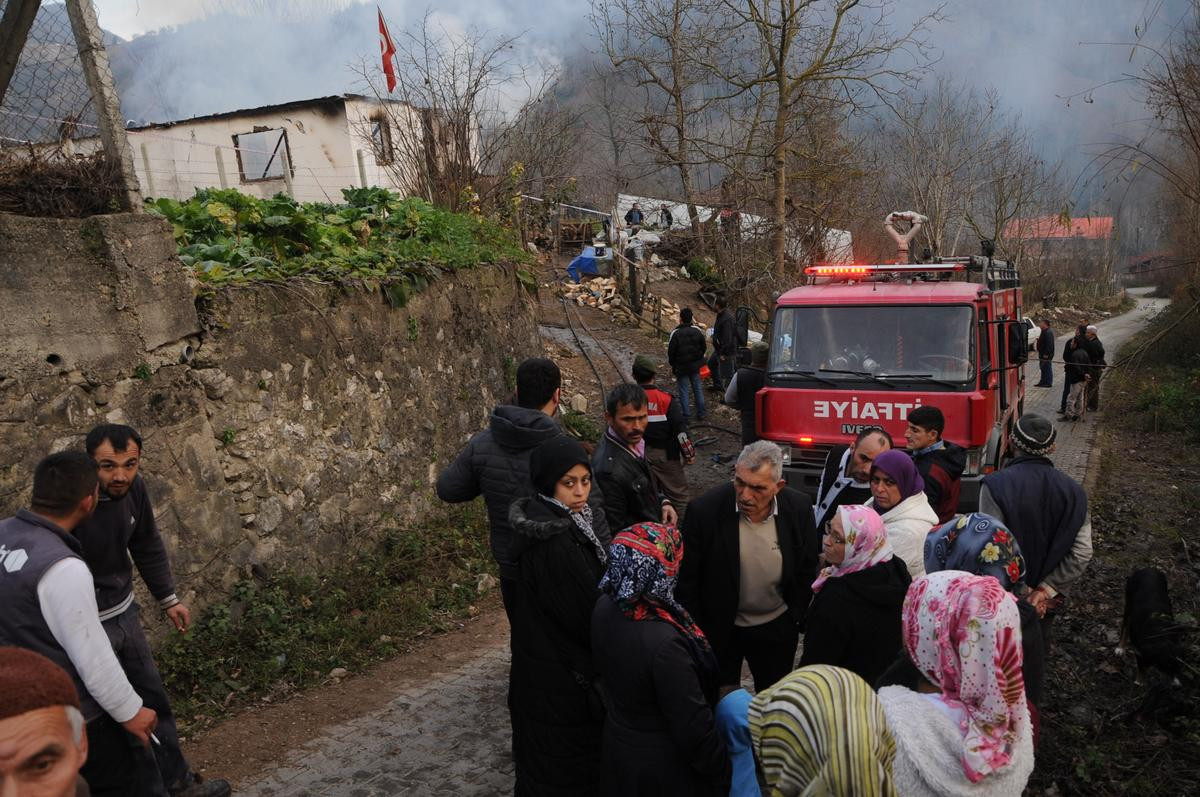 Kısa sürede büyüyen alevler nedeniyle köylülerin eve giremediği yangına, itfaiye ekipleri müdahale etti.