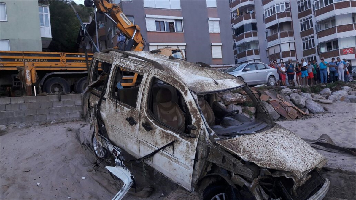 BARTIN (AA) - Amasra ilçesinde 13 Ağustos'da yaşanan sel felaketinde, sel sularının denize sürüklediği Habib Kaya'ya ait araç, denizden çıkarıldı.