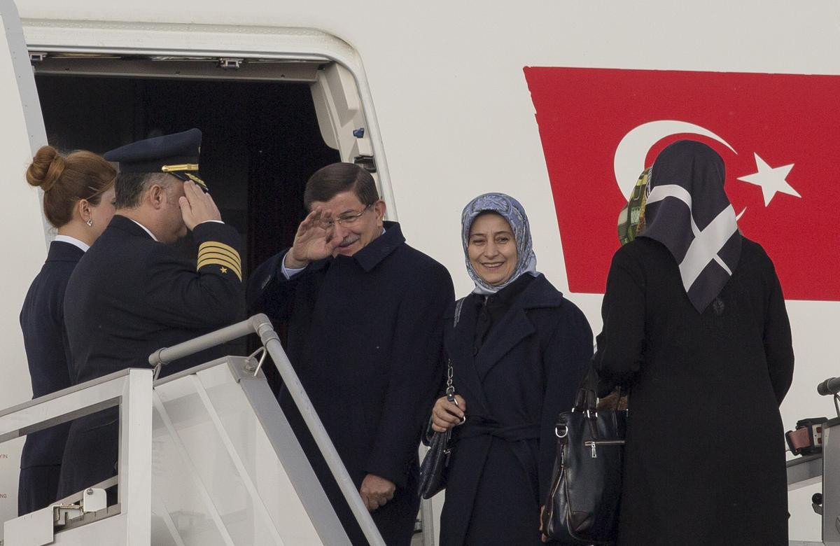 Davutoğlu'nu Esenboğa Havalimanı'ndan Başbakan Yardımcısı Tuğrul Türkeş ile öteki yetkililer uğurladı.