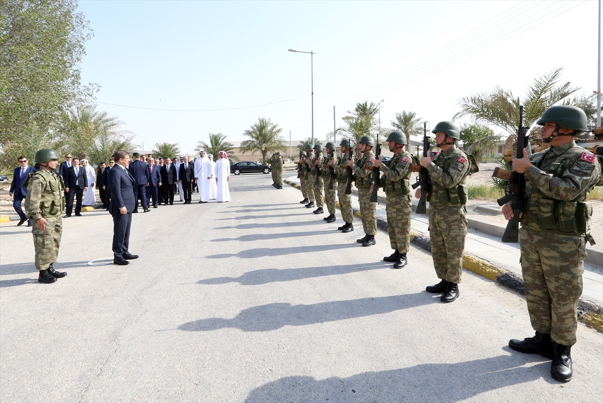 Davutoğlu, başkent Doha'daki Tarık Bin Ziyad Taburu içinde yer alan komutanlıkta incelemelerde bulundu. Askeri mangayı selamlayan Davutoğlu, buradaki yetkililerden bilgi aldı.