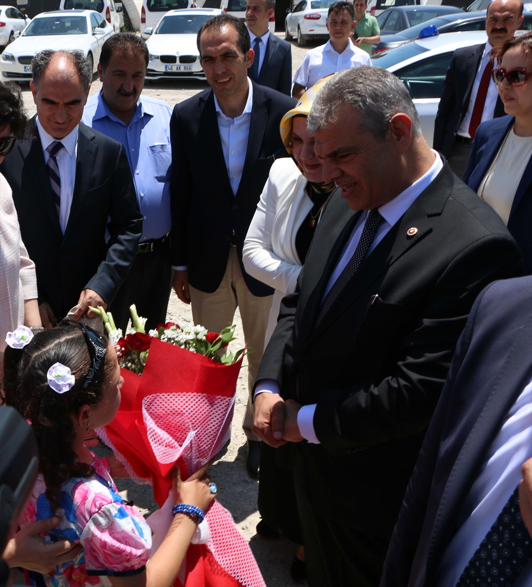 Başbakan Yardımcısı Kaynak, kendisini karşılayanlar arasında bulunan Suriyeli yetim çocukları çadırlarında ziyaret etti, onlarla bir süre görüştü ve çeşitli hediyeler verdi.