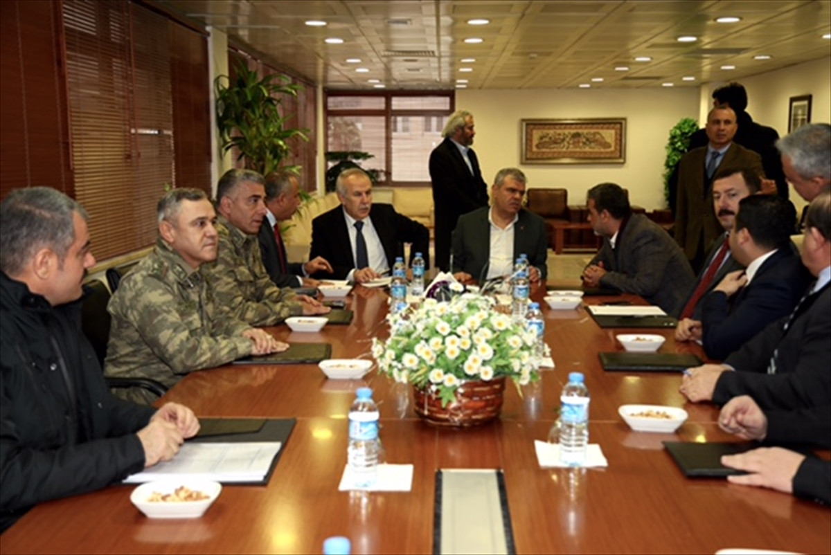 Reyhanlı ilçesinde Cilvegözü Sınır Kapısı Müki İdare Amirliğini ziyaret eden Kaynak, amirlik yetkilileri ile bölgede görev yapan Başbakanlık Afet ve Acil Durum Yönetimi Başkanlığı (AFAD) ve diğer kurum yetkililerinden brifing aldı.