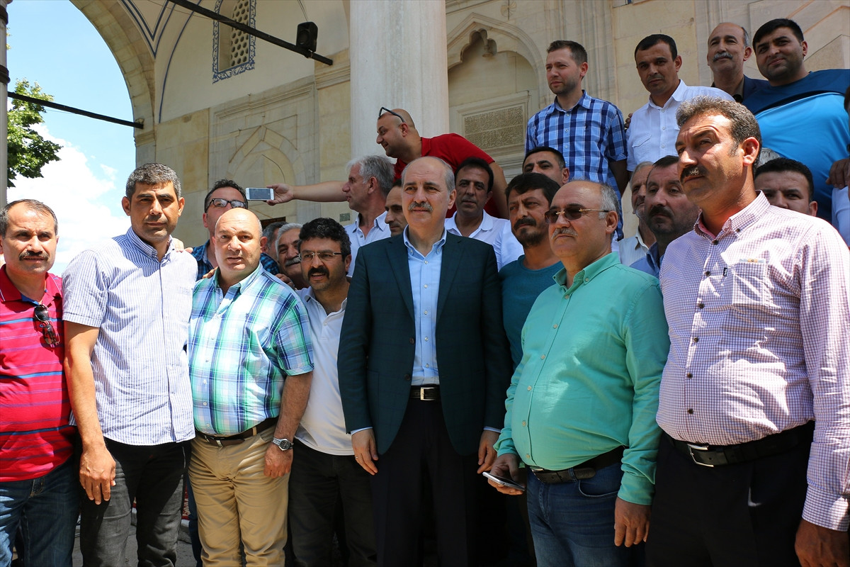 Namaz çıkışında vatandaşların yoğun ilgi gösterdiği Kurtulmuş, vatandaşlarla sohbet edip cami bahçesinde hatıra fotoğrafı çektirdi.
