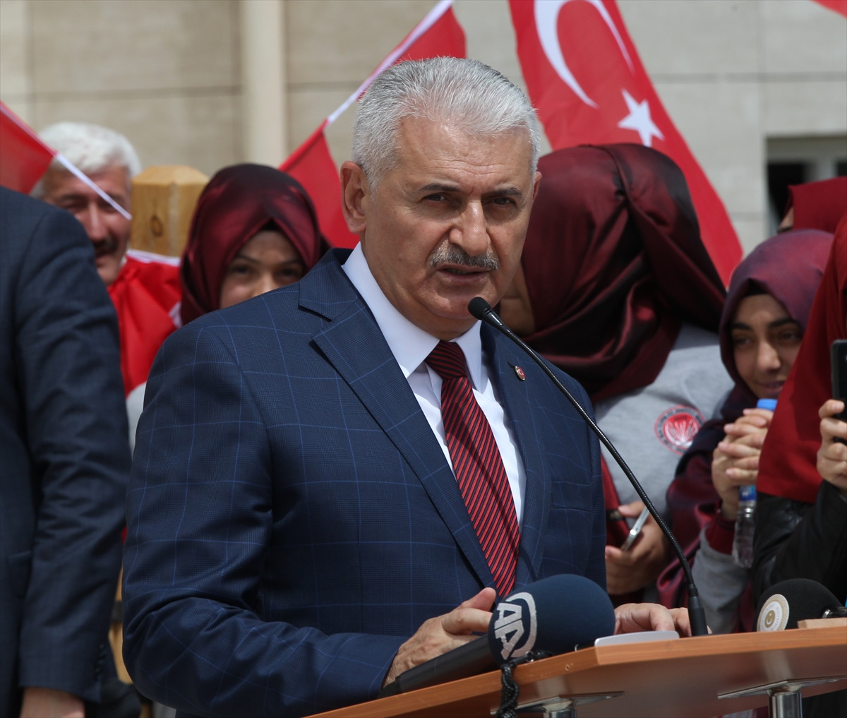Burada yaptığı konuşmada, Erzincan'ın bugün başka bir güzel olduğunu, başbakan olarak ilk defa baba ocağına geldiğini aktaran Yıldırım, öğrencilere okullarının güzel olup olmadığını, beğenip beğenmediklerini sordu. Öğrencilerin "evet" yanıtını alan Yıldırım, "Güzel bir eğitim ve öğretimi mevlam nasip eylesin. Sizlerle gurur duyuyoruz. Sizler bizim geleceğimizsiniz, Türkiye'nin geleceği sizsiniz. Onun için size ne kadar yatırım yapsak, ne kadar hizmet etsek o kadar layıksınız. Size ve öğretmenlerinize teşekkür ediyorum. Onlar gençlerimizi geleceğe hazırlıyor." diye konuştu.