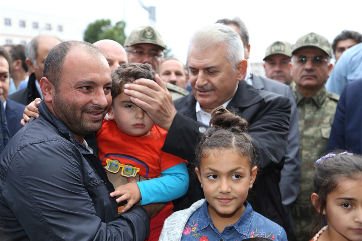 Burada hastane yetkilileri tarafından karşılanan Başbakan Yıldırım, hastane girişinde kendisini bekleyen vatandaşlarla sohbet etti ve çocukları sevdi.