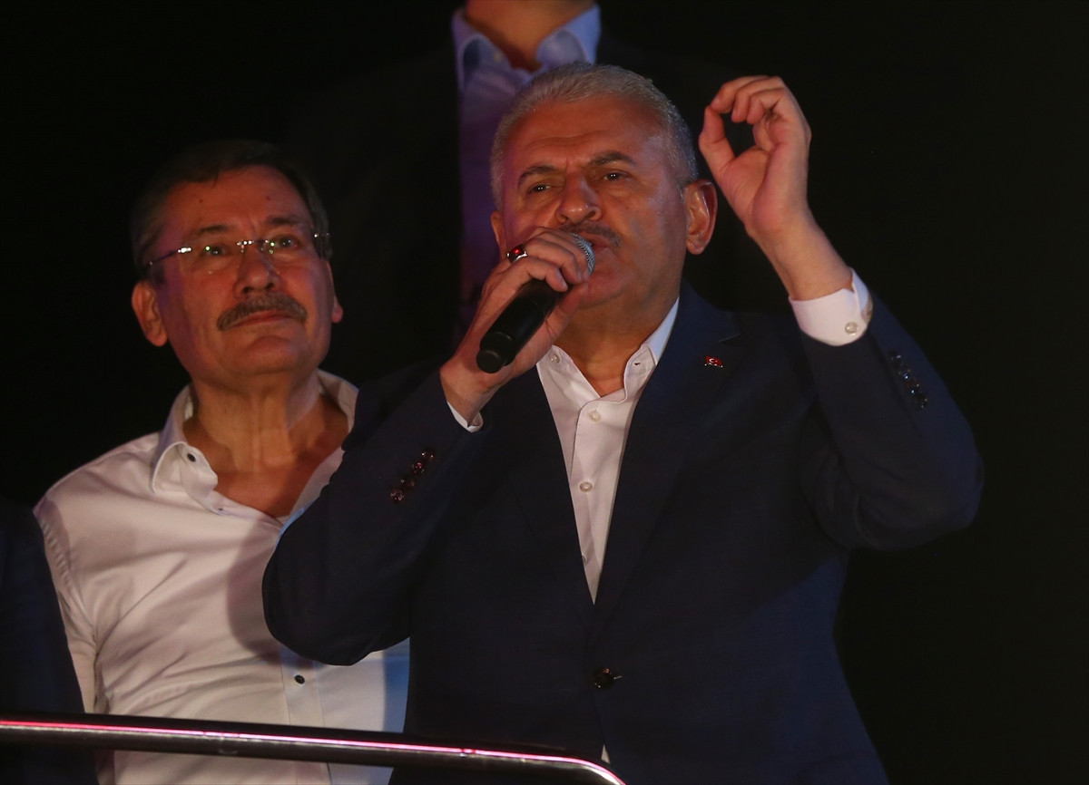Yıldırım, Kızılay Meydanı'nda Fetullahçı Terör Örgütü'nün (FETÖ) darbe girişimini protesto etmek amacıyla toplanan vatandaşlara hitap etti.