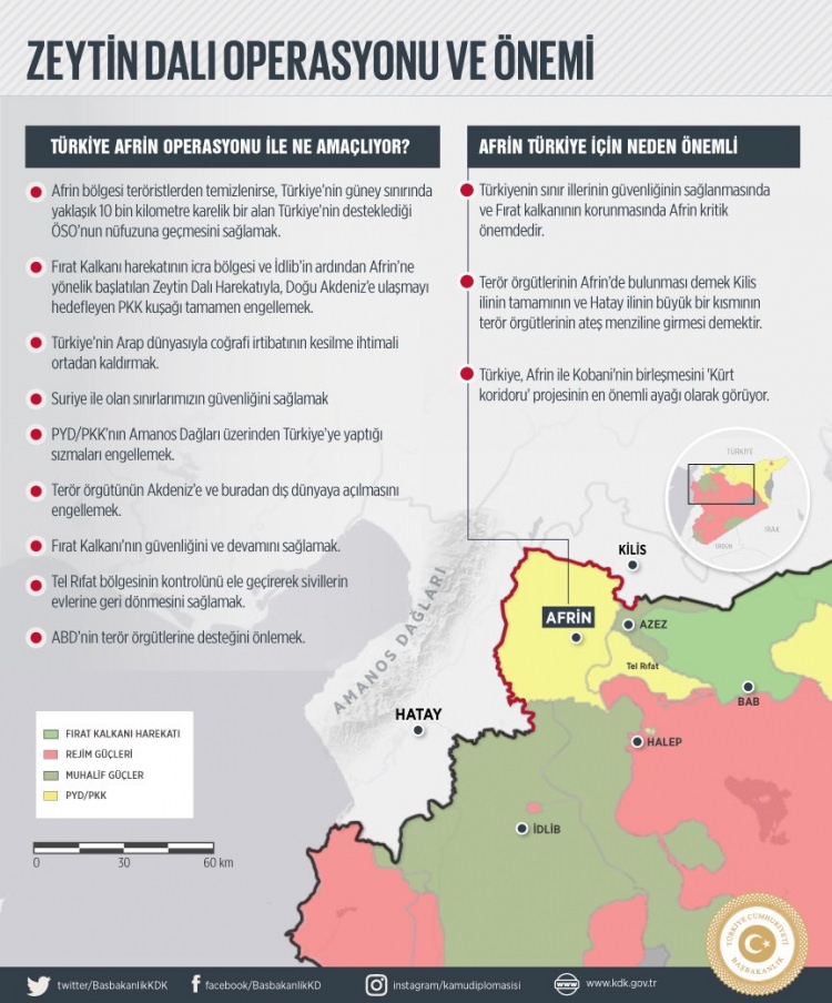 Başbakan Binali Yıldırım, “Harekat çok seri şekilde yapılacaktır. Medyayı kontrollü şekilde sınır ötesine götüreceğiz. Masum insanlara zeytin dalı uzatıyoruz. Afrin’deki teröristlere yapılacak her destek bu operasyonun hedefi olur” dedi.