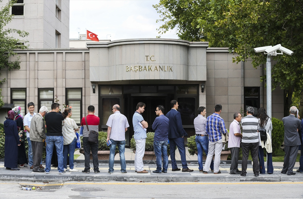 Mağdur olduklarını iddia edenler, Başbakanlık önünde uzun kuyruk oluştururken, hazırladıkları dosyalarla haklarında verilen idari kararların yeniden incelenmesini talep ediyor.