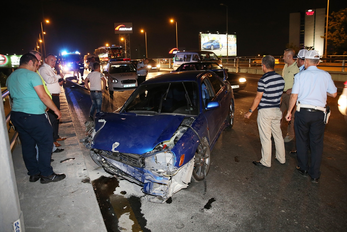 Kazada 34 UH 8195 plakalı otomobil aydınlatma direğine çarparak durabildi. Otomobilin sürücüsü ise olay yerinden uzaklaştı. Köprü korkuluklarını kıran, Bekir Tozan yönetimindeki otomobil de askıda kaldı.