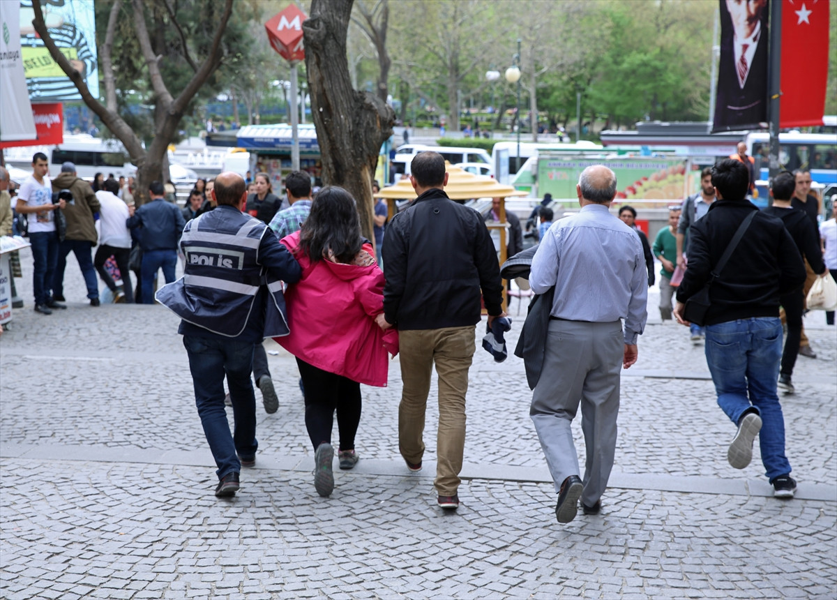 Çevik kuvvet ekipleri, grubun dağılmaması üzerine müdahalede bulunduğu gruptan 3 kişiyi gözaltına aldı.