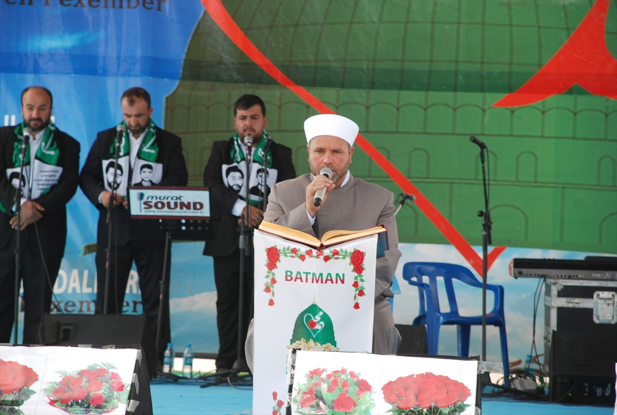 Türkçe, Kürtçe, Arapça, İngilizce ve Zazaca, "Anamız babamız sana feda olsun ya Resulallah", "Milyonlarca can sana kurban ya Muhammed", "İslam Peygamberine canlar feda", "Ya Resulallah meydanlar senin sevdanı haykırıyor" ve "Hepimiz İslamla şeref kazandık" yazılı pankartların yer aldığı etkinlik, Suriye Şam Emevi Cami Müezzini Hafız Şeyh Münir Abdulcebbar'ın okuduğu Kur'an-ı Kerim tilaveti ile başladı.