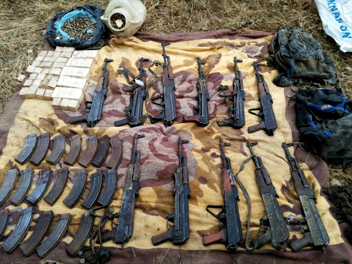 Operasyonda toprağa gömülü terör örgütü PKK'ya ait 11 uzun namlulu silah, 19 şarjör, söz konusu silahlara ait 5 bin mermi, 3 sırt çantası ve harici bellek bulunduğu bildirildi.