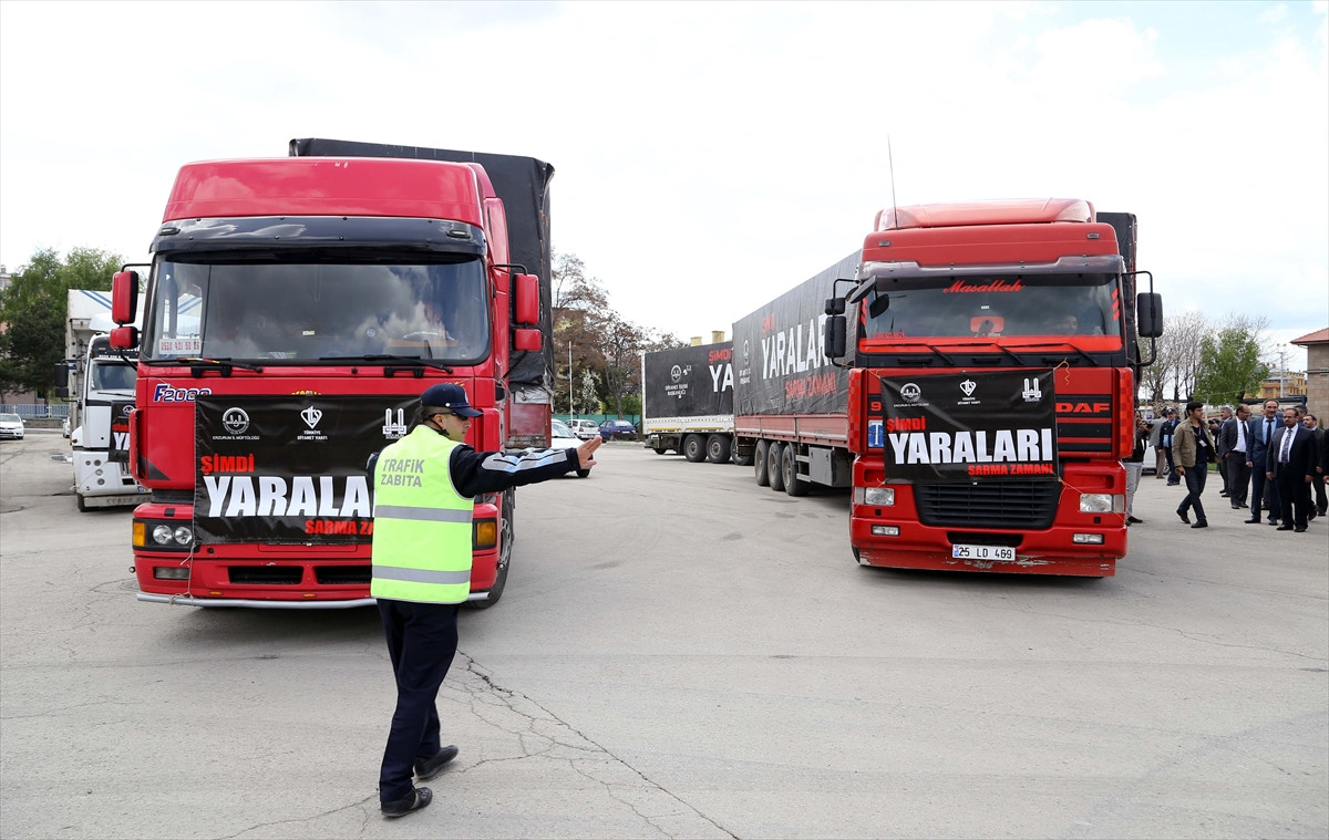 "Şimdi Yaraları Sarma Zamanı" sloganıyla düzenlenen kampanyada toplanan yardım malzemeleri, İstasyon Meydanı'nda düzenlenen törenle Bayırbucak Türkmenlerine ulaştırılmak üzere tırlarla gönderildi.