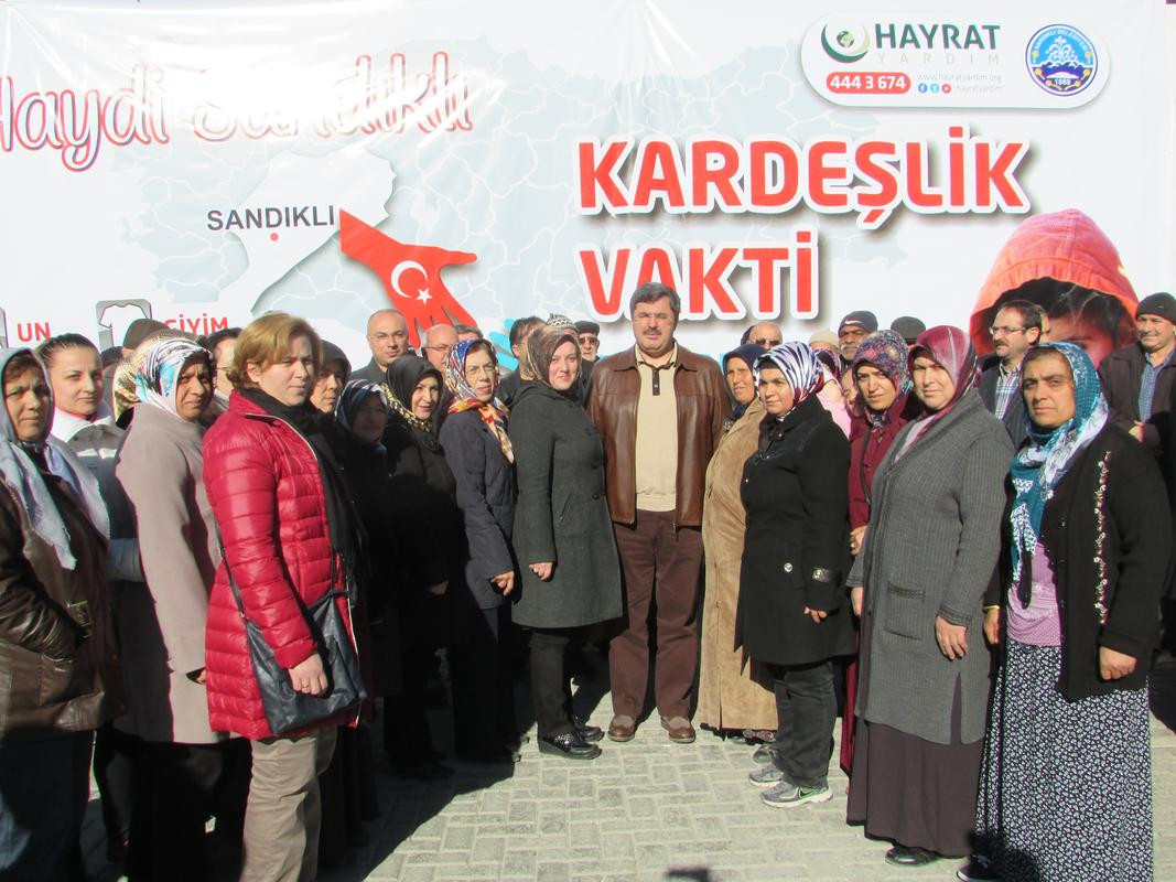 Hayrat Yardım Derneği Sandıklı Temsilcisi Yusuf Ali Yılmaz, Sandıklı Belediyesi önünde düzenlenen uğurlama töreninde, mazlumlara yönelik kampanya düzenlediklerini belirtti.