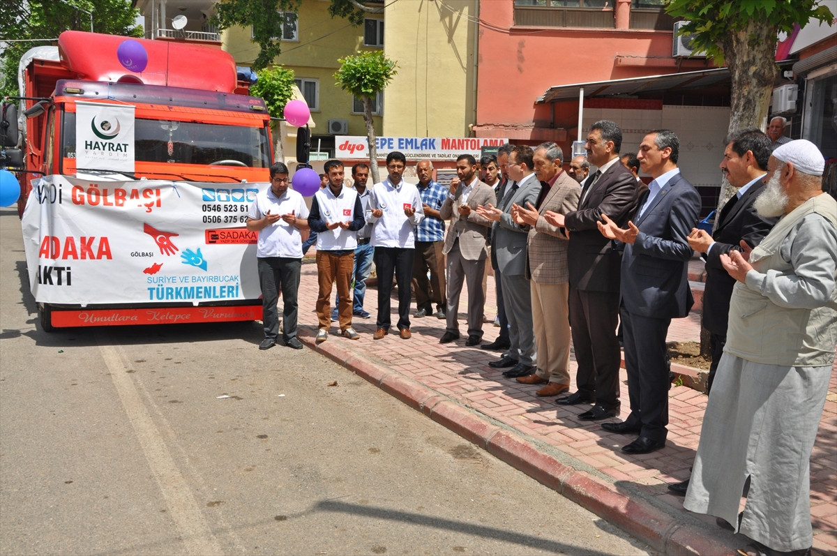 ADIYAMAN (AA) - Gölbaşı ilçesinde, Hayrat İnsani Yardım Vakfınca temin edilen iki tır insani yardım malzemesi, Bayırbucak Türkmenlerine gönderildi.