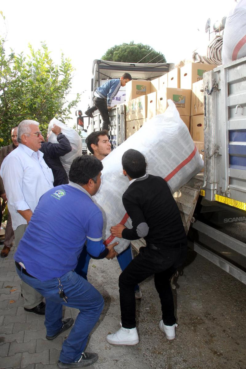 Fethiye ve Seydikemer ilçelerinde toplanan gıda, kışlık giyecek ve battaniye yardımları, Seydikemer Belediyesi tarafından temin edilen tıra yüklendi. Yardım tırı, Bayırbucak Türkmenlerine ulaştırılmak üzere yola çıktı.