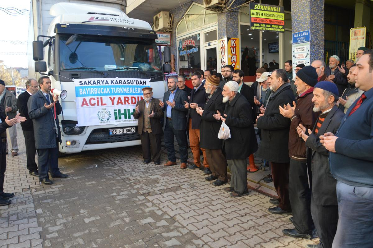 SAKARYA (AA) - İnsan Hak ve Hürriyetleri (İHH) İnsani Yardım Vakfı aracılığıyla toplanan yardım malzemelerinin yüklendiği tır, Bayırbucak Türkmenlerine ulaştırılmak üzere yola çıkarıldı.