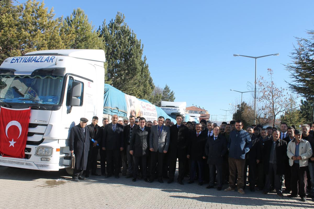 İlçe Müftüsü Halil Kocaoğlu'nun ettiği duanın ardından, 4 tır yola çıktı.