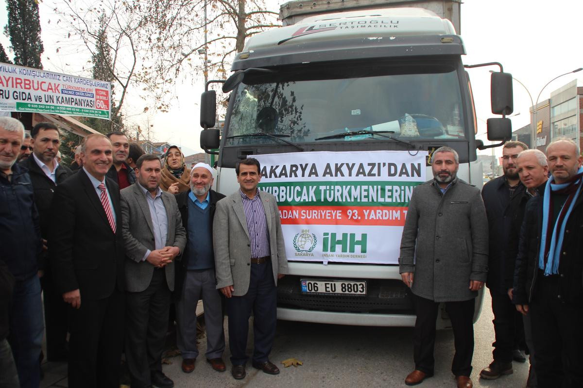 SAKARYA (AA) - İnsan Hak ve Hürriyetleri (İHH) İnsani Yardım Vakfı aracılığıyla toplanan yardım malzemelerinin yüklendiği üç tır, Bayırbucak Türkmenlerine ulaştırılmak üzere yola çıkarıldı.
