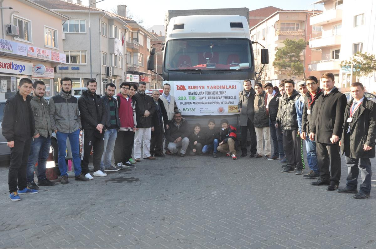 KIRKLARELİ (AA) - Hayrat İnsani Yardım Derneği Lüleburgaz Temsilciliği'nce toplanan bir tır yardım malzemesi, Bayırbucak Türkmenlerine gönderildi.