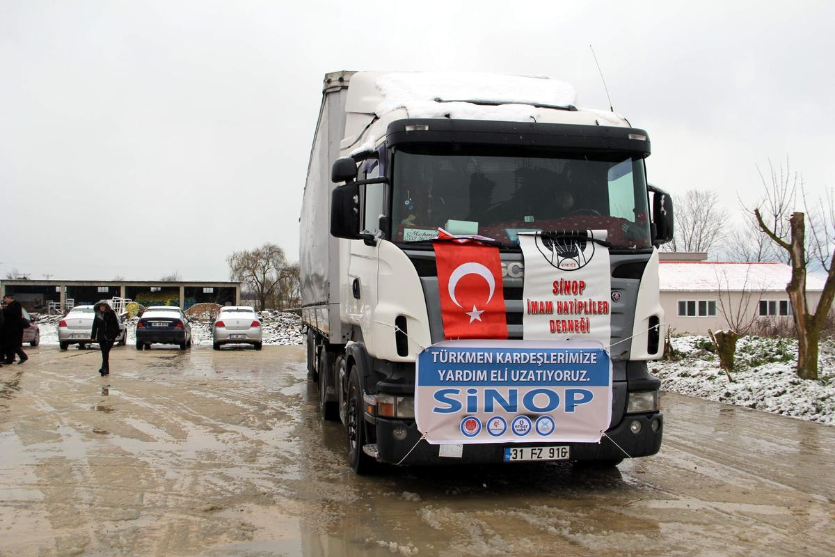 SİNOP (AA) - Sinop İmam Hatipliler Derneğince düzenlenen kampanyada toplanan yardım malzemeleri, Bayırbucak Türkmenlerine ulaştırılmak üzere tırla yola çıkarıldı.
