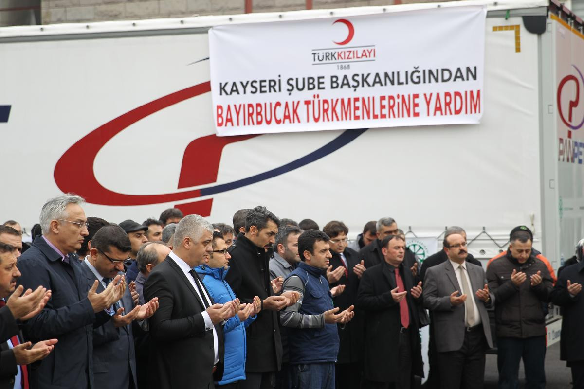 KAYSERİ (AA) - Bayırbucak Türkmenleri için Kayseri Şeker Fabrikası ve çalışanlarının desteğiyle toplanan yardım malzemesinin yüklendiği iki tır, Suriye'ye gönderildi.