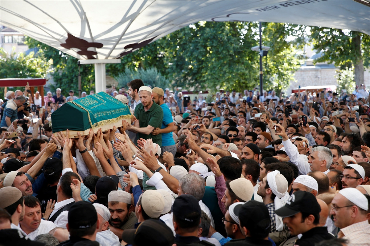 Fatih Camisi'nde ikindi vakti düzenlenen cenaze törenine, TBMM Başkanı İsmail Kahraman, eski Başbakan Ahmet Davutoğlu, İstanbul Valisi Vasip Şahin ile çok sayıda vatandaş katıldı. Yeğin'in yakınları, burada taziyeleri kabul etti.