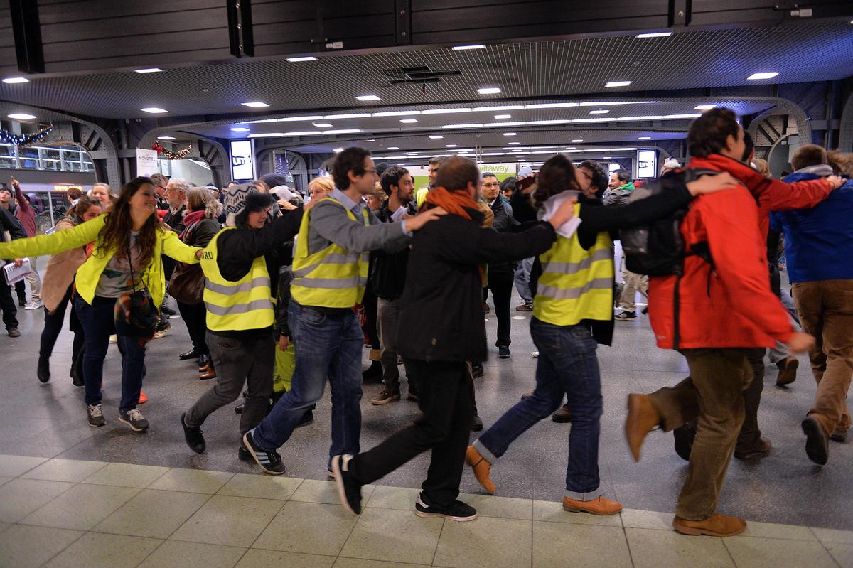 Demiryolu sendikaları üyeleri, Brüksel tren istasyonunda toplanarak yerel saatle 22.00'de 2 gün sürecek grevin başladığını duyurdu.