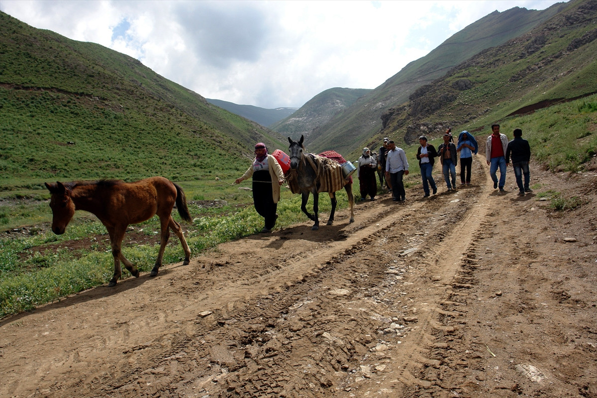 İlçeye bağlı Büyükçiftlik beldesinde şafak sökmeden patika yola koyulan kadınlar, beldeye 7 kilometre uzaklıktaki Dolan Yaylası'na çıkıyor.
