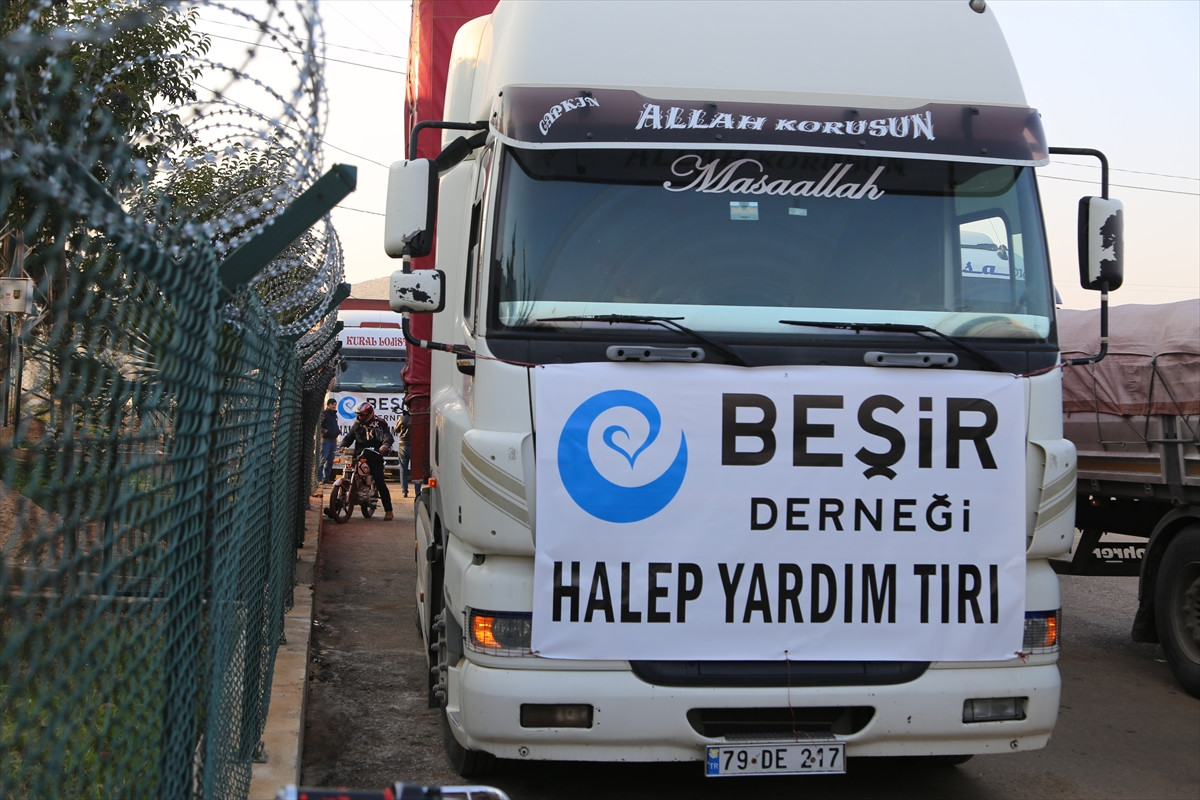 HATAY (AA) - Beşir Derneği, Suriye'de, Beşşar Esed rejimi ve rejim yanlısı yabancı terörist grupların kuşatmasındaki Halep'in doğusundan tahliye edilen sivillere yönelik 3 tır insani yardımda bulundu.