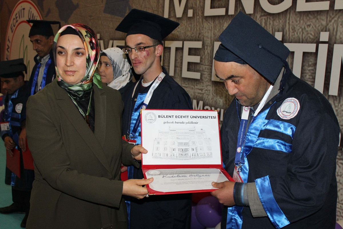 ZONGULDAK (AA) - Bülent Ecevit Üniversitesi (BEÜ) Sürekli Eğitim Merkezi ile Engelsiz BEÜ Koordinatörlüğü işbirliğinde gerçekleştirilen "Engelsiz Üniversite Eğitimi" kapsamında eğitim gören 33 engelli için mezuniyet töreni düzenlendi.
