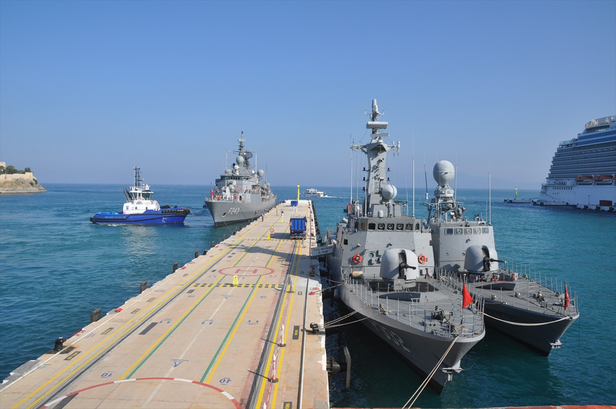 TCG Yıldırım fırkateyni, TCG Mızrak ve TCG Doğan hücümbotları, TCG Binbaşı Saadettin Gürcan akaryakıt gemisi, Kuşadası Ege Ports Limanı'na römorkörler eşliğinde yanaştı.