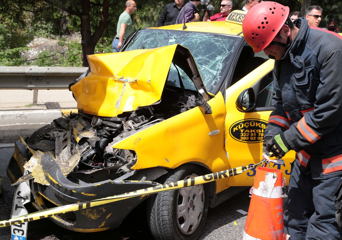 Bu sırada arkadan gelen Rahmi Kutlu idaresindeki 34 TJC 42 plakalı ticari taksi, sürücünün direksiyon hakimiyetini kaybetmesi üzerine, durakta bekleyen otobüse arkadan vurdu. Ticari taksi sürücüsü Rahmi Kutlu, direksiyonda sıkıştı.
