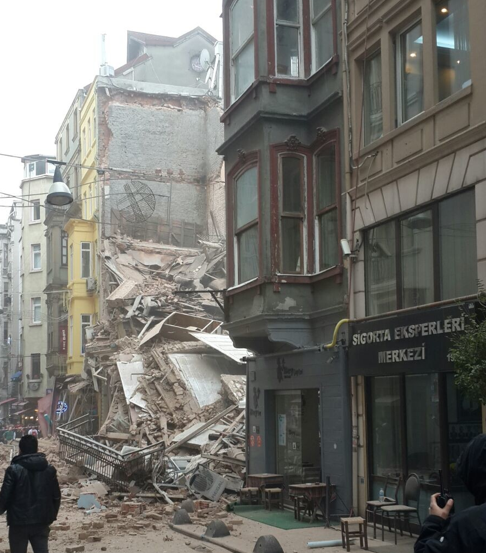 İstanbul Beyoğlu'nda İstiklal Caddesi yakınlarında 5 katlı bina çöktü.