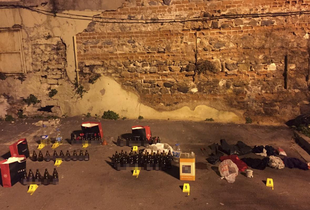 Açıklamada, aramada, 47 boş bira şişesi, 17 içi sıvı dolu bira şişesi, 7 molotofkokteyli, 10 maske, 1 paket fitil, 1 yarısına kadar benzin dolu 10 litrelik bidon, 1 yarısına kadar benzin dolu 5 litrelik bidon, 1 huni, 12 kilogramlık teneke içerisinde selülozik tiner bulunduğu kaydedildi.
