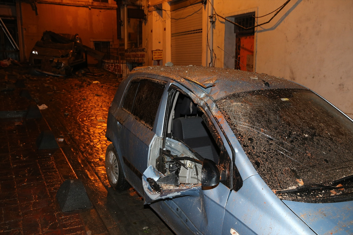 Yapılan incelemelerde, duvar parçalarının park halindeki iki otomobilin üstüne düşmesiyle hasara yol açtığı belirlendi.