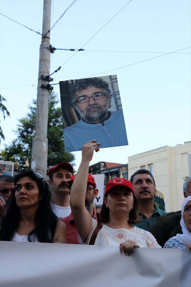 İSTANBUL (AA) - Beyoğlu'nda toplanan Türkiye Gazeteciler Sendikası (TGS) üyesi bir grup, bir günlüğüne Özgür Gündem gazetesinin nöbetçi genel yayın yönetmenliğini üstlenen Prof. Dr. Şebnem Korur Fincancı, gazeteci-yazar Ahmet Nesin ve gazeteci Erol Önderoğlu'nun tutuklanmasını protesto etti.