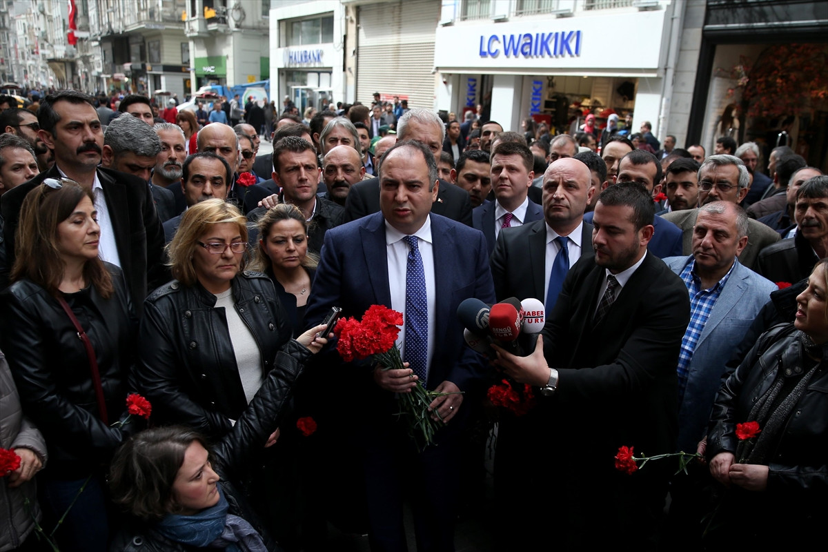 Galatasaray Meydanı'ndan bir araya gelerek patlamanın olduğu yere kadar yürüyen MHP'liler, vatandaşlara karanfil dağıttı, esnafı ziyaret ederek moral verdi.