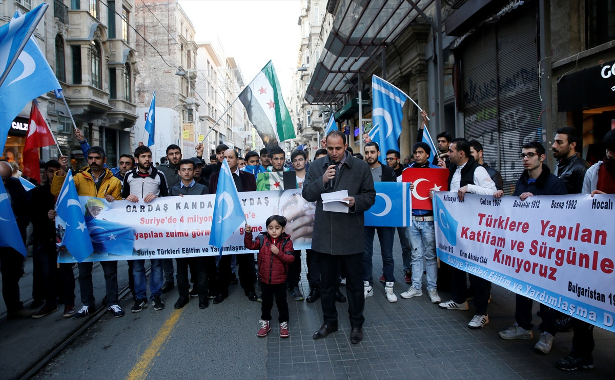 İstanbul Beyoğlu'nda, Rusya'nın Halep ve çevresinde yaşayan Türkmenlere yönelik saldırıları protesto edildi.