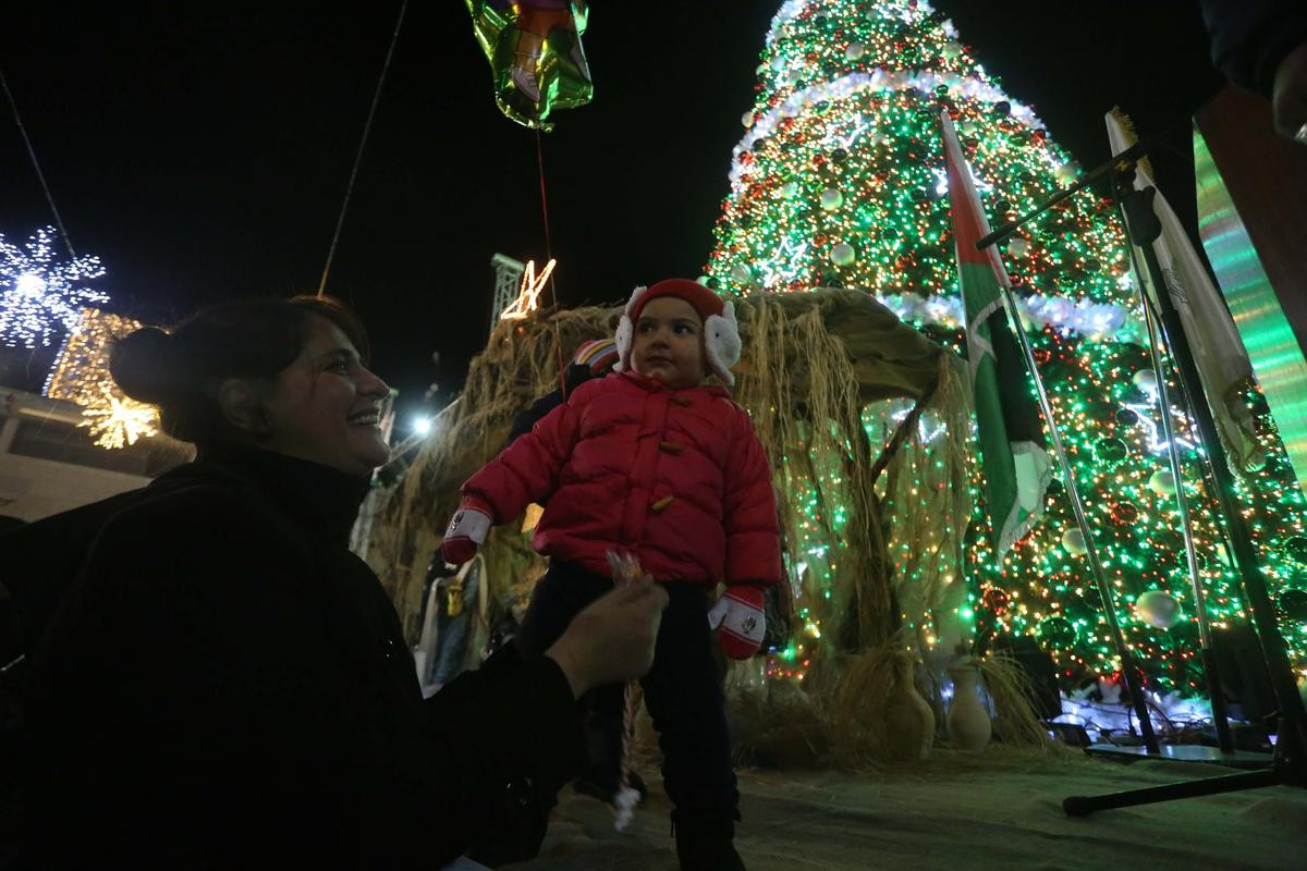 Törende konuşan Baboun, "Bugün Noel Ağacı'nı aydınlattık. Ama her gün Filistinliler öldürülüyor, yaralanıyor, onlarcası esir ediliyor. Bugün dünyaya barış ve huzur istediğimizi ve bu topraklarda yaşamaya, hüznümüzü ve mutluluğumuzu burada tatmaya devam edeceğimizi söylüyoruz" dedi.