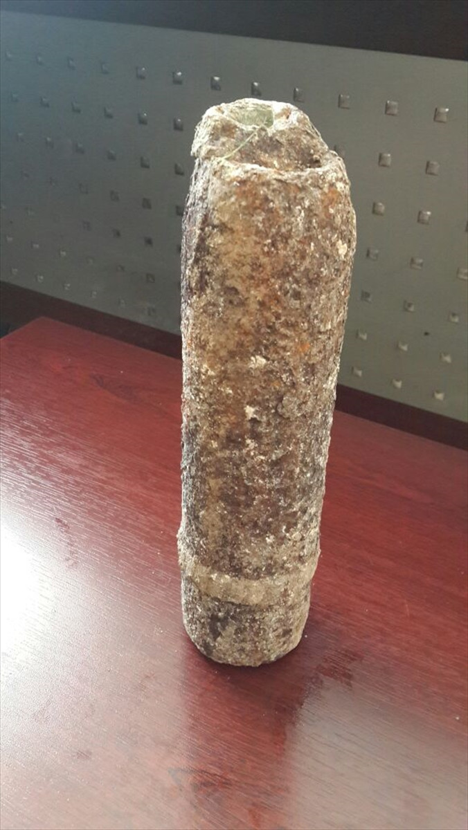 Bomba imha uzmanları, yaptıkları arama sonucu, 30 santimetre uzunluğunda 60 kilogramlık top mermisini tespit etti. Alana, güvenlik şeridi çekildi.