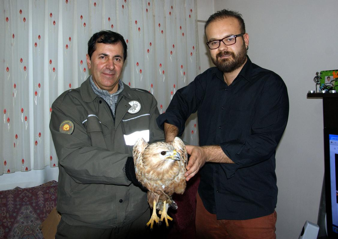 BİLECİK (AA) - Bilecik'in Bozüyük ilçesinde, donmak üzere olan yaralı kızıl şahin, Bozüyük Doğa Koruma Milli Parklar Şefliği'ne teslim edildi.