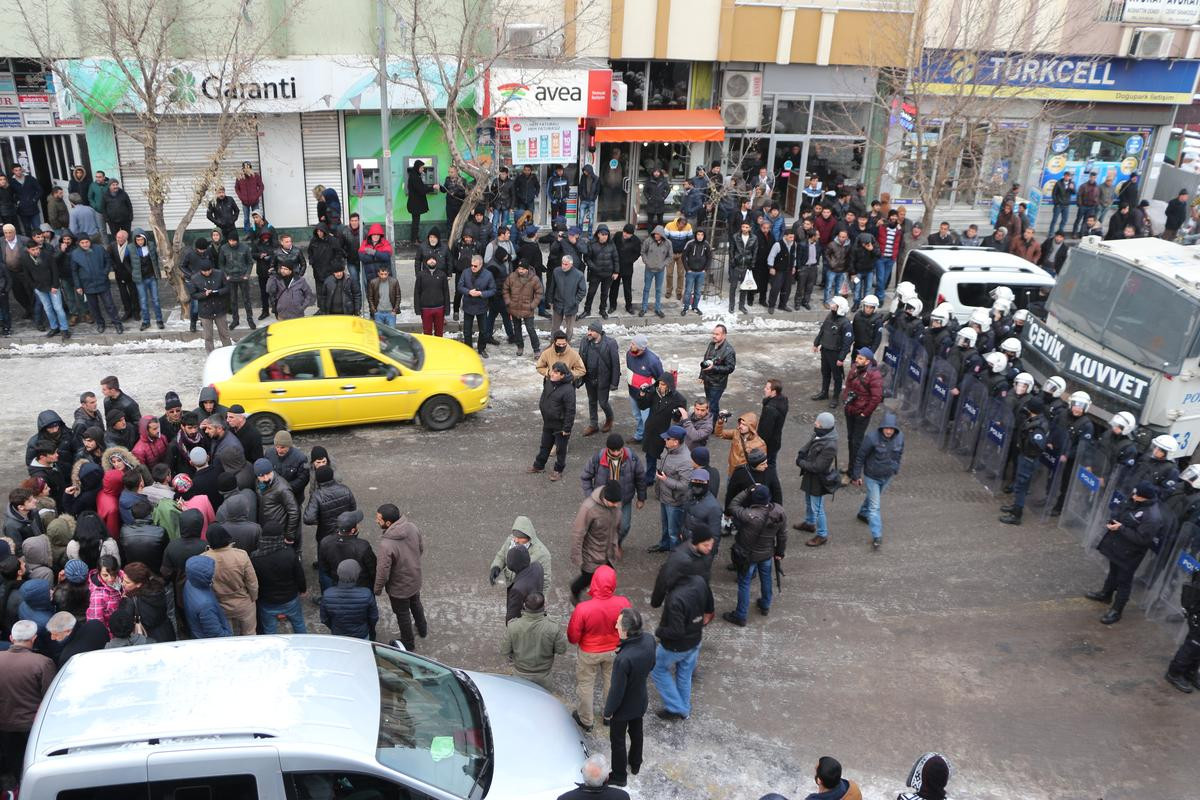 HDP ve Demokratik Gençlik Dernekleri Federasyonu üyelerinden oluşan grup, terör örgütü PKK'ya yönelik operasyonların sürdüğü Diyarbakır'ın Sur, Şırnak'ın Cizre ve Silopi ile Mardin'in Nusaybin ilçelerinde uygulanan sokağa çıkma yasaklarını protesto etme bahanesiyle Genç Caddesi'nde toplandı.