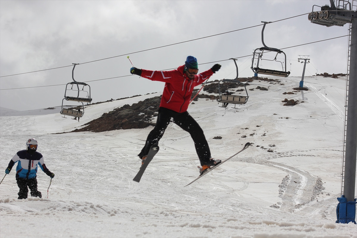 Batı'daki birçok ilde vatandaşlar yaz havası yaşarken, Türkiye'de en uzun süre kar tutan kayak merkezlerinden Hesarek'e gelenler, kayak keyfini doyasıya yaşıyor.
